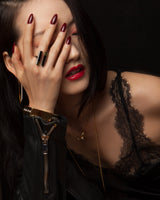 Gold vermeil is created using a thick layer of genuine gold plated over sterling silver, while black rhodium plating gives jewelry its striking dark, mirror-like sheen. Both finishes are achieved through a meticulous electroplating process that requires skill and precision to ensure an even, luminous coating.