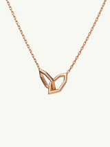 The Amanti Necklace showcases two interlocking geometric hexagon pendants—an ancient sacred symbol representing spiritual consciousness, harmony, and the balance of masculine and feminine energy—meticulously handcrafted in luminous 18-karat rose gold.
