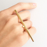 The Lilith Brilliant-Cut White Diamond Bar Ring by jewelry designer Angie Marei is handcrafted in luxurious blackened 18-karat white gold. This ring features a sleek knife-edge surface and a sparkling brilliant-cut round white diamond capturing and reflecting light from all angles. A must-have piece for Fearless Femme Fatales to flaunt all day... into the night.