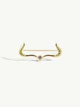 Amun-Ra Taurus Lapel Brooch Pin With Tsavorite Garnets & Sapphire In 18K Yellow Gold