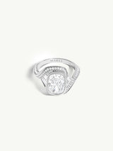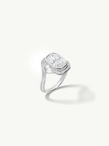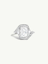 Maat Engagement Ring With Brilliant Cushion-Cut Diamond, Baguettes & Pavé-Set White Diamonds in 18K White Gold