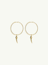 Impeccably handcrafted gold Damian Horn Talisman Hoop Earrings by Angie Marei featuring horn pendants inspired by amulets and talismans worn by the ancient Egyptians. Handcrafted in luxurious 18-karat yellow gold.