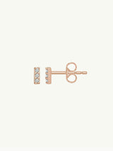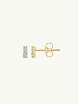 Eternal by Marei Petite brilliant pavé-set white diamond gold bar earrings, crafted in hand-polished 14-karat gold. Designed for effortless versatility, these delicate diamond earrings can be mixed, matched, and styled with other studs or statement pieces. Total diamond weight: 0.05 carats.