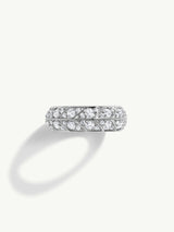 The Palmyra Eternity Band, created by Angie Marei, is an exquisite piece of jewelry made from 18-karat white gold and studded with sparkling brilliant-cut white diamonds. The inspiration for the design comes from Ancient Egyptian architecture and desert palm trees, which are reflected in the textures and negative spaces of the intricate details. The elaborate design is sure to become an heirloom piece that generations of admirers will cherish. The ring can be worn as a wedding band or as a statement piece.