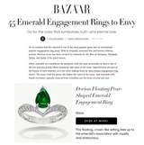 The Dorian Floating Teardrop-Shaped Emerald Engagement Ring by Angie Marei features an exquisite vivid green Emerald designed to mirror a water droplet delicately held in suspension. Skillfully handcrafted in platinum and encrusted with rows of brilliant-cut pavé white diamonds. Visualize the soft waves of the ocean as they bind together with the strength of the human spirit.The Hebrew name Doron translates to 'gift' and the female name Doris stems from Greek origin meaning "gift of the ocean.” The curved bright lines of the piece capture and reflects light which mimics the beauty of the feminine silhouette, yet the bold armor-like encasement exudes strength.