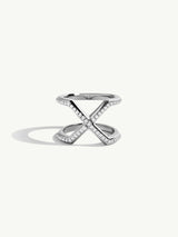 The Exquis Pavé-Set Brilliant White Diamond Infinity Ring by Angie Marei features an architectural cross-over infinity design that symbolizes eternal love and power. Exquisitely handcrafted in platinum and pave-set brilliant white diamonds that sparkle and reflect light from every angle.