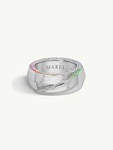 • Pavé-set brilliant-cut round natural white diamonds, an array of multi-colored natural sapphires and Tsavorite garnets on both sides of the ring