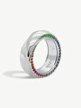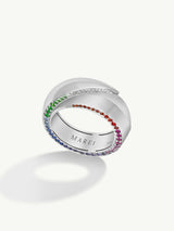 Sahara Oasis Ring With Pavé-Set Brilliant-Cut Diamonds and Rainbow Ombré Sapphires In Platinum, 8mm
