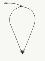 The Alexandria Pendant Necklace by Angie Marei features an architectural art deco-inspired pendant on a gleaming chain. Exquisitely handcrafted in blackened 18-karat gold. In this piece, Marei takes inspiration from the Step Pyramid of Djoser of Ancient Egypt that ascended upwards from the ground towards the sky, symbolizing a stairway to heaven.