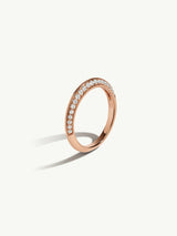 The Marei Beveled-Edge Pavé Diamond Band by Angie Marei handcrafted in 18-karat rose gold and featuring two rows of impeccable pavé-set brilliant white diamonds so bright they gleam and sparkle in the light– and darkness.