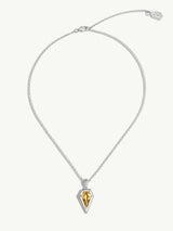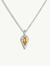 The Aphrodite Amulet Pendant Necklace by Angie Marei features a stunning yellow Citrine precious gemstone elegantly framed in a gorgeous pendant suspended from a diamond cut cable chain crafted entirely from solid 18k white gold - making it durable and perfect for everyday wear. The length of the necklace can be adjusted to be worn as a choker.