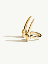 The Damian Brevis Horn Talisman Ring by Angie Marei, handcrafted in high-polished luxurious solid 18-karat yellow gold features a powerful and sensual sculptural horn design inspired by amulets and talismans worn by royal ancient Egyptians.
