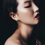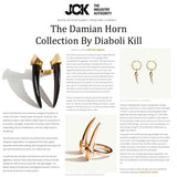 The Damian Horn Talisman Dagger Earrings by Angie Marei feature a powerful, sensual, and sculptural horn motif design inspired by amulets and talismans worn by the ancient Egyptians. Luxuriously handcrafted in luxurious solid 18-karat yellow gold.