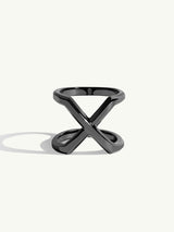 The Exquis Beveled Edge Infinity Ring by Angie Marei, exquisitely handcrafted in blackened sterling silver features an architectural cross-over infinity design symbolizing eternal love and power. The high polished beveled edges catch and reflect light from all angles. This sleek minimalist unisex ring is sure to become part of your everyday ritual.