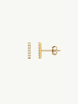 Eternal by Marei Micro Bar Earrings brilliant pavé-set white diamond gold bar earrings, crafted in hand-polished 14-karat gold. Designed for effortless versatility, these delicate diamond earrings can be mixed, matched, and styled with other studs or statement pieces. Total diamond weight: 0.10 carats.