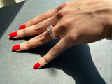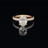 As its name suggests, Suma, the Arabic word for "moonlight" and "beauty," the fiercely feminine Suma Engagement Ring by designer Angie Marei is the ultimate embodiment of striking beauty featuring an exquisite brilliant cut Oval-Shaped white diamond mounted in a classic four-claw-prong 18-karat white gold and pavé diamond setting. Glittering white diamond accents are skillfully handset adorning each prong and band. And a single sparkling white diamond is secretly set beneath the center stone touching the wearer's skin. A romantic element of surprise and symbol of love.