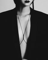 The Aracelis Diamond Body Chain Necklace by Angie Marei is a sensual fusion of minimalist design and wearable sculpture. A brilliant-cut round white diamond is set in a sleek 18-karat blackened gold pendant, delicately suspended from a solid gold chain that wraps fluidly around the body. Radiant and effortlessly striking, this piece is best styled with a bikini or plunging neckline—captivating in its elegance and undeniable allure.