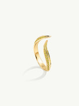 The Ayla Arabesque Ring by Angie Marei is a captivating piece that seductively wraps around the wearer's finger. This gorgeous ring is crafted from stunning 18-karat yellow gold and features sparkling pavé-set diamonds in an eye-catching vivid yellow color that catches the eye and reflects the light perfectly.