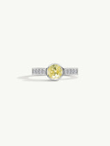 • Shown with a 1.00-Carat round brilliant-cut yellow diamond center stone